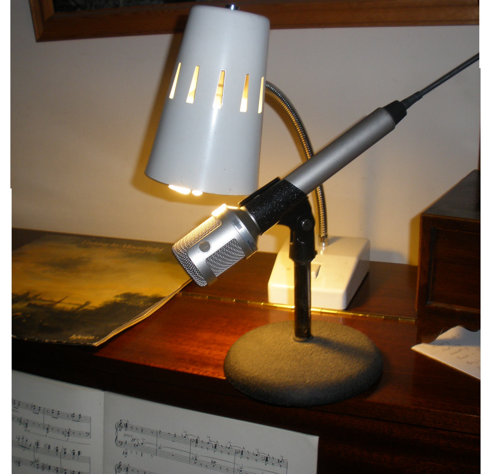 microphone on top of the piano, feeding into a cassette deck